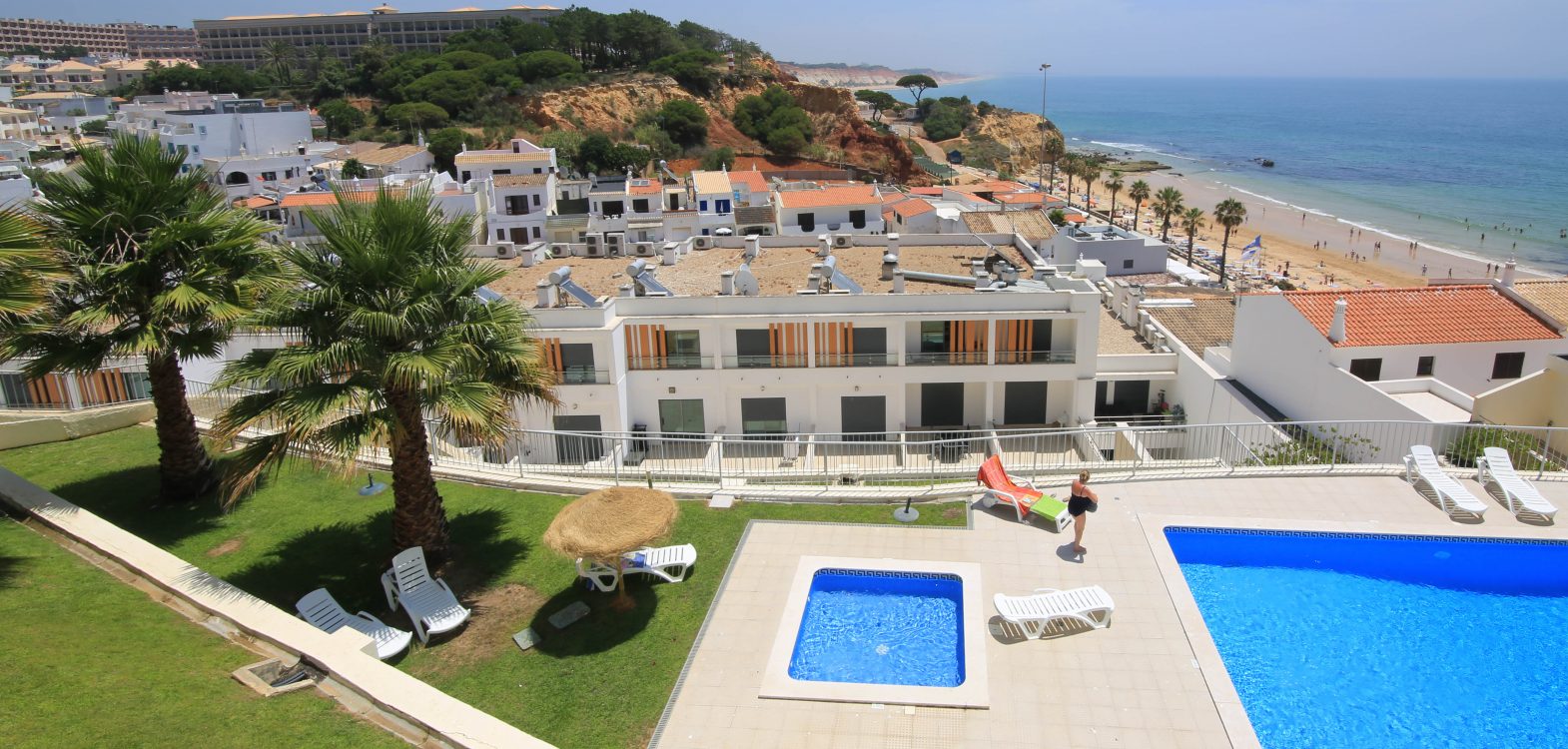 The swimming pool area, which also has sea views, has a good sized adult pool plus a child pool – and is for the exclusive use of residents and guests in this apartment block.